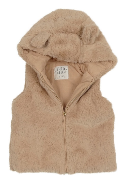 Růžová kožešinová zateplená vesta s kapucí s oušky F&F