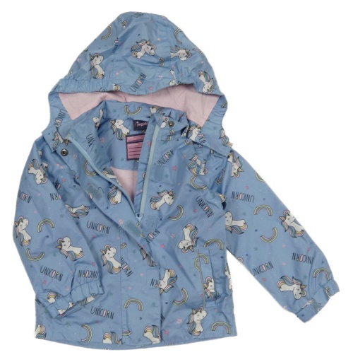 Světlemodrá šusťáková jarní bunda s jednorožci a kapucí Impidimpi