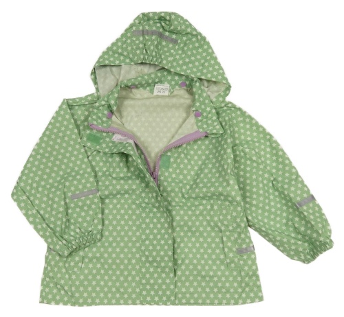 Zelená šusťáková nepromokavá bunda s hvězdičkami a odepínací kapucí Papagino