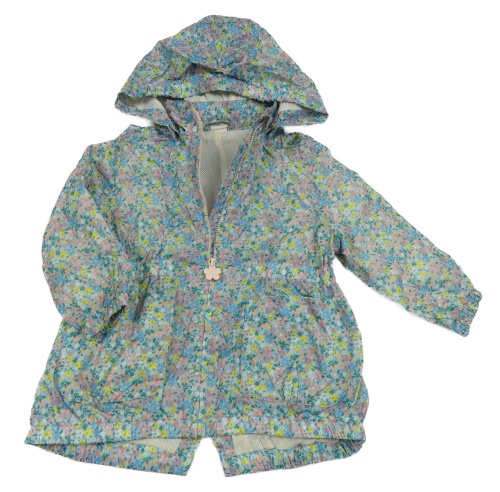 Světlemodrá kytičkovaná šusťáková jarní parka s odepínací kapucí H&M