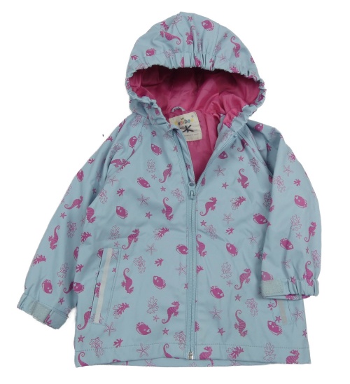 Světlemodrá nepromokavá jarní bunda s mořskými koníky a hvězdicemi a kapucí Kuniboo