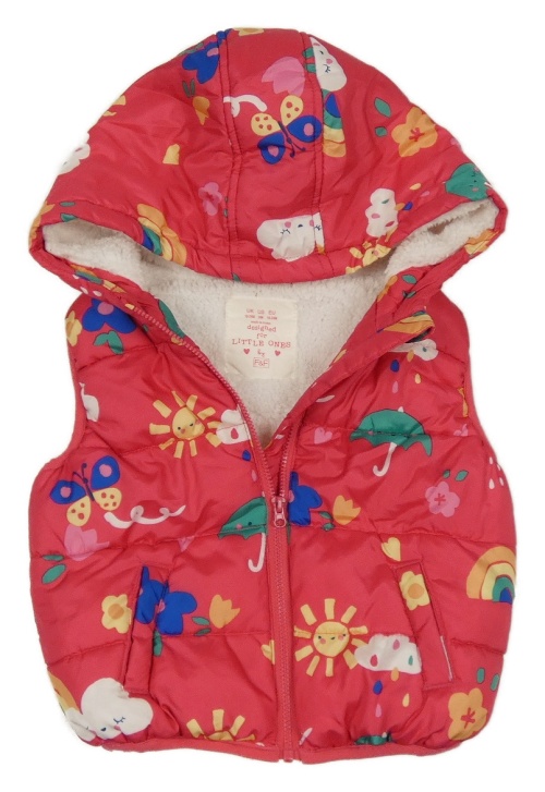 Růžová šusťáková zateplená vesta s obrázky a kapucí F&F