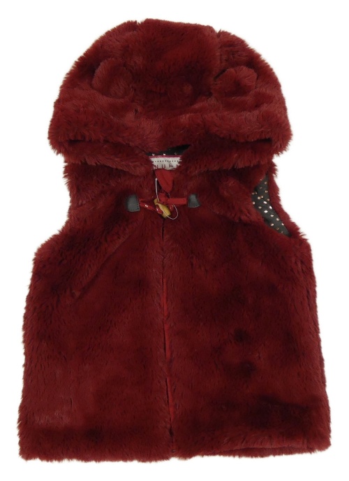Vínová kožešinová podšitá vesta s kapucí s oušky NUTMEG