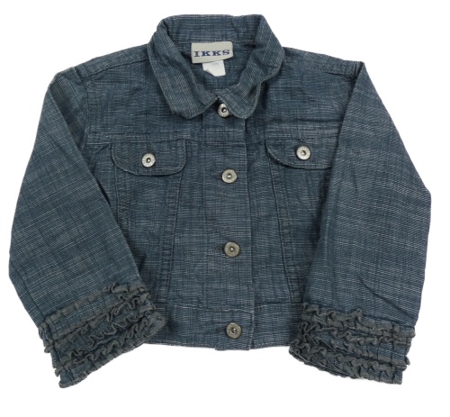 Tmavomodrá melírovaná riflová bunda s volánky
