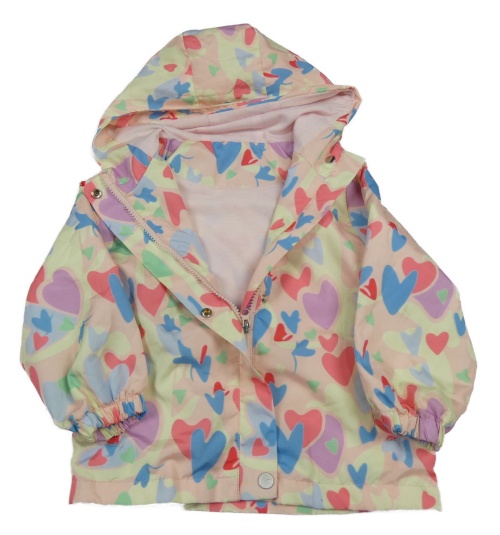Světlerůžovo-barevná vzorovaná šusťáková jarní bunda s kapucí