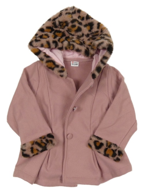 Starorůžový flaušový kabátek s kožešinou a kapucí
