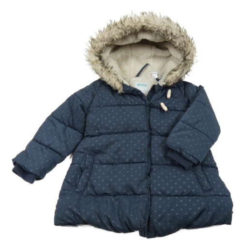 Tmavomodrý šusťákový prošívaný zimní kabát s puntíky a kapucí Obaibi