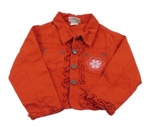 Červená riflová bunda s květinou a volánky Topolino
