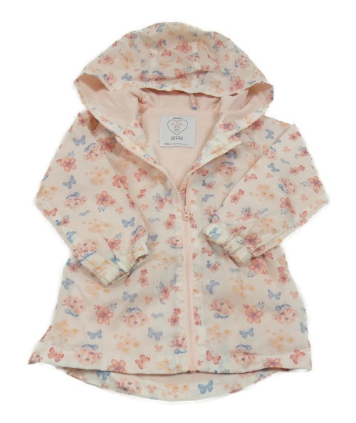 Světlerůžová šusťáková jarní parka s kytičkami a motýlky a kapucí PRIMARK
