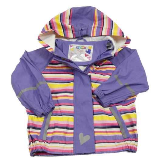 Fialovo-barevná nepromokavá bunda s pruhy a kapucí Lupilu