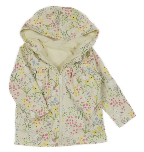 Smetanovo-barevná nepromokavá květovaná bunda s králíky a kapucí dunnes