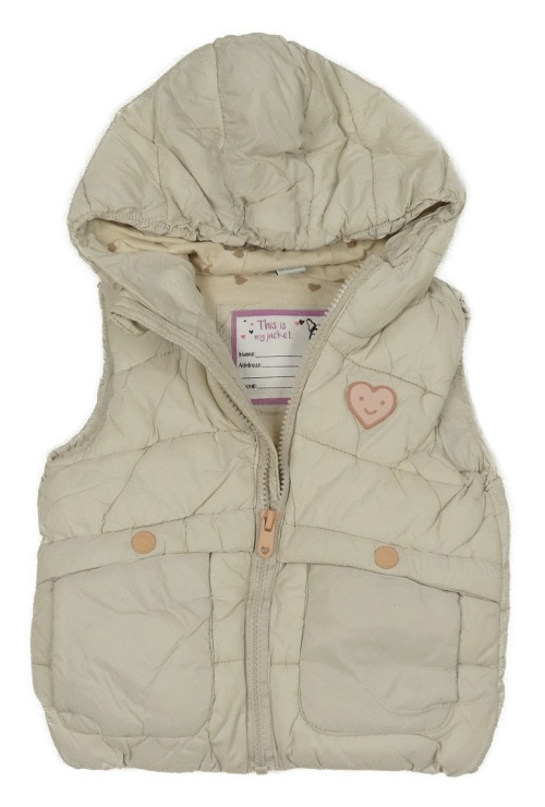 Smetanová prošívaná šusťáková zateplená vesta se srdíčkem a kapucí dopodopo