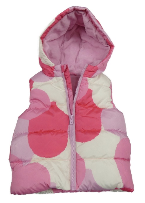 Nové - Bílo-růžová vzorovaná šusťáková zateplená vesta s kapucí Dunnes