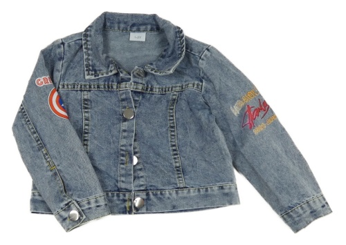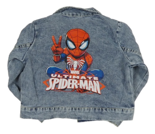 Modrá šisovaná riflová crop bunda se Spider-manem a límečkem