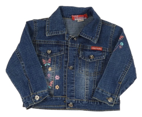 Tmavomodrá riflová crop bunda s motýlky a límečkem