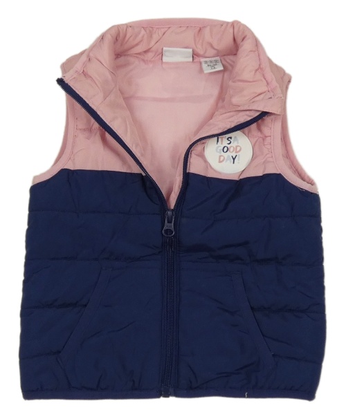 Růžovo-tmavomodrá šusťáková zateplená vesta s nášivkou Lily & Dan