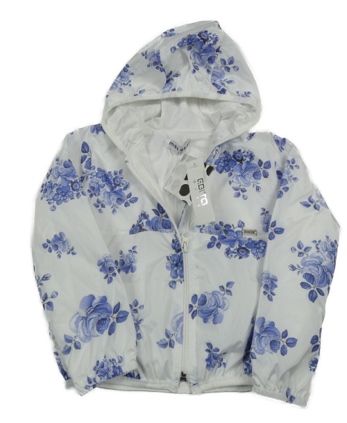 Nové - Bílá šusťáková jarní bunda s květy a kapucí Ebito
