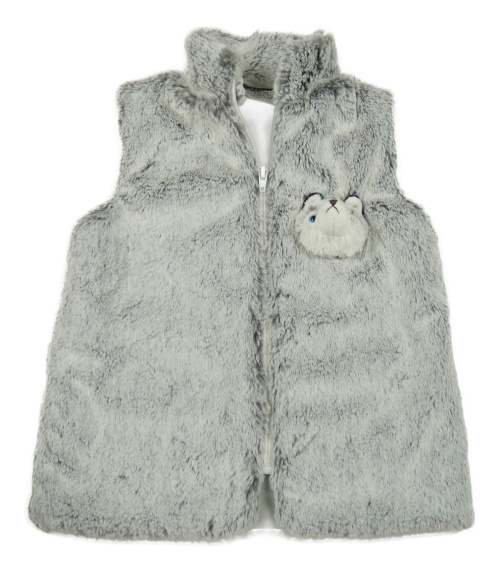 Šedá melírovaná kožešinová podšitá vesta s vlkem