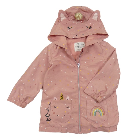 Růžová puntíkatá jarní bunda s jednorožcem a kapucí F&F
