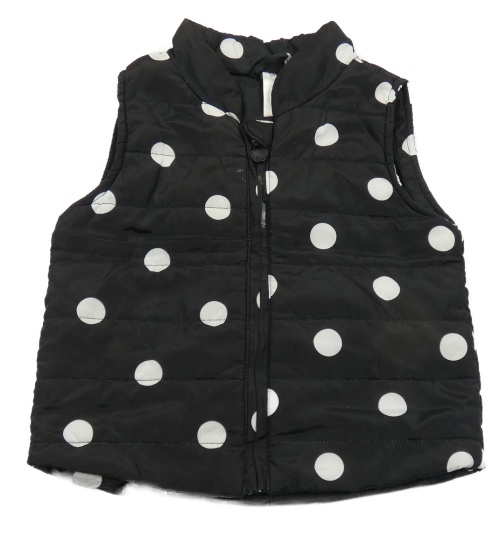 Černo-bílá puntíkatá šusťáková lehce zateplená vesta