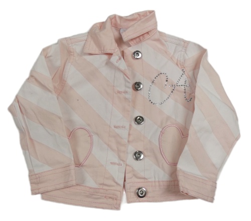 Světlerůžovo-bílá pruhovaná plátěná bunda s nápisem z kamínků