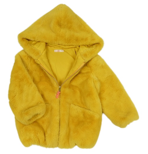 Žlutý chlupatý podšitý kabátek s kapucí