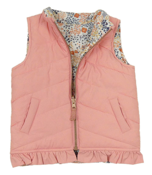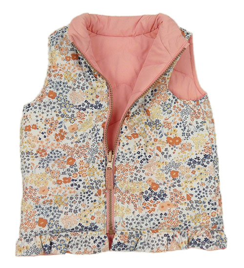 Bílá prošívaná šusťáková zateplená oboustranná vesta s kytičkami a volánkem