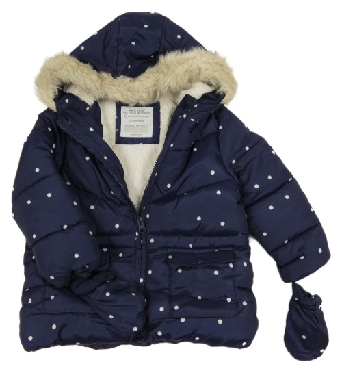 Tmavomodrá puntíkatá šusťáková zimní bunda s kapucí + rukavice Primark
