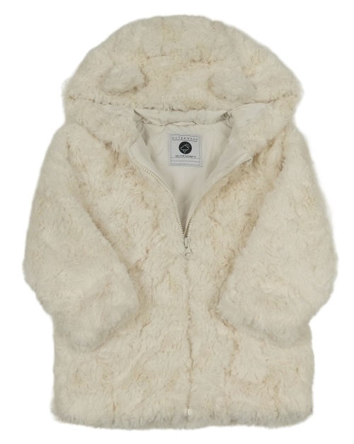 Smetanová kožešinová zateplená bunda s kapucí Tu