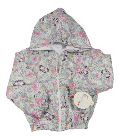 Nová - světlešedá melírovaná šusťáková podzimní bunda s obrázky a kapucí