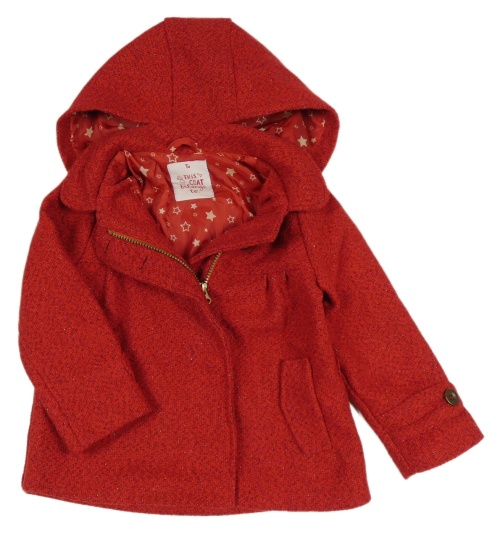 Červený třpytivý vlněný podšitý kabát s kapucí Tu