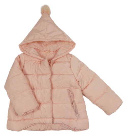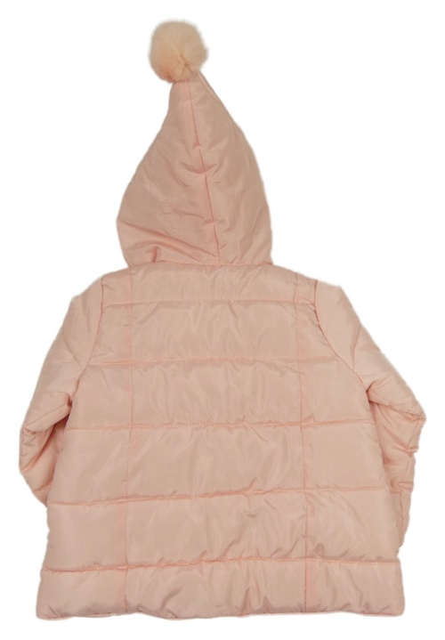 Růžová šusťáková zimní bunda s kapucí s bambulí