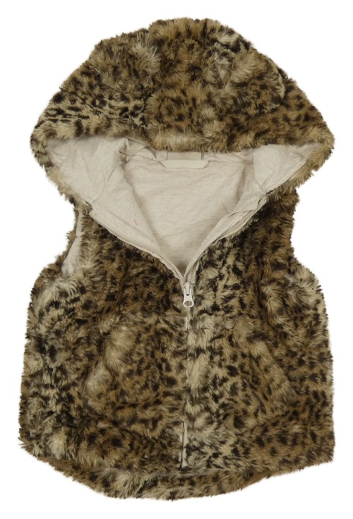 Béžovo-černá chlupatá podšitá leopardí vesta s kapucí Next
