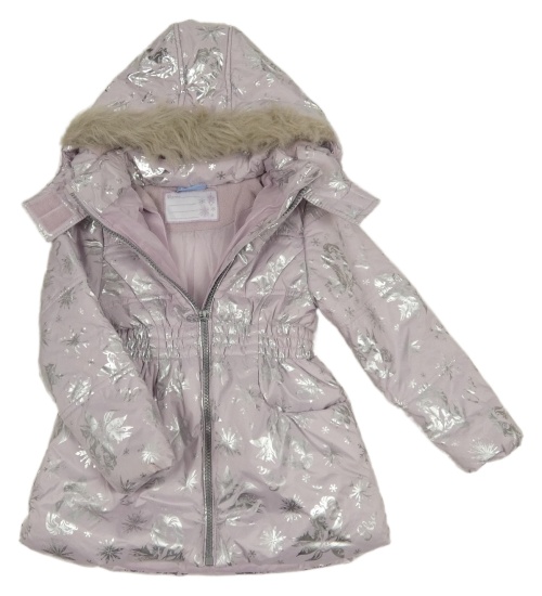 Lila šusťáková vzorovaná zimní bunda s kapucí s kožešinou - Frozen Disney