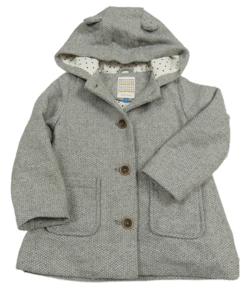 Šedo-bílý melírovaný vlněný zateplený kabátek s kapucí o oušky John Lewis