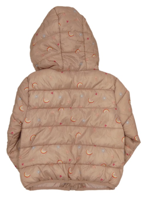 Starorůžová prošívaná šusťáková zateplená bunda s duhami a srdíčky a kapucí M&Co