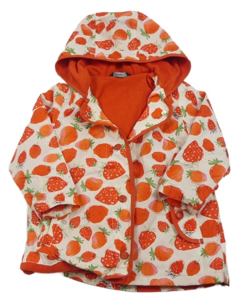 Bílo-červená šusťáková zateplená bunda s jahodami a kapucí George