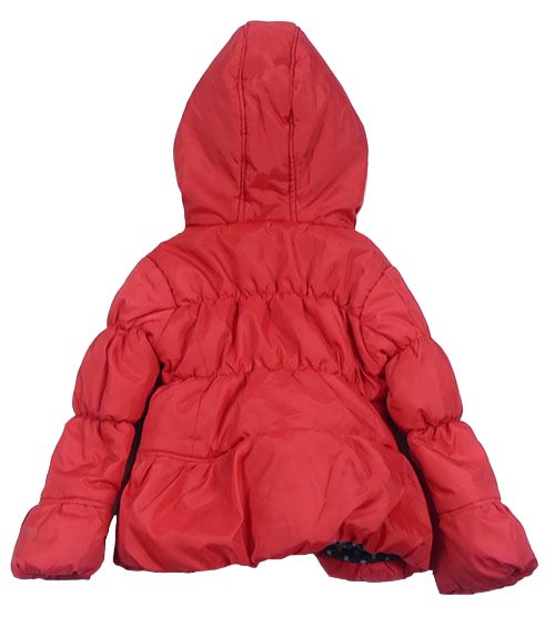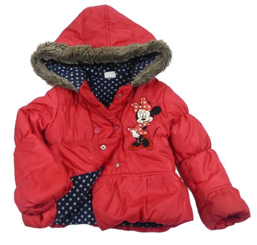 Červená prošívaná šusťáková zimní bunda s Minnie a kapucí s kožešinou Disney