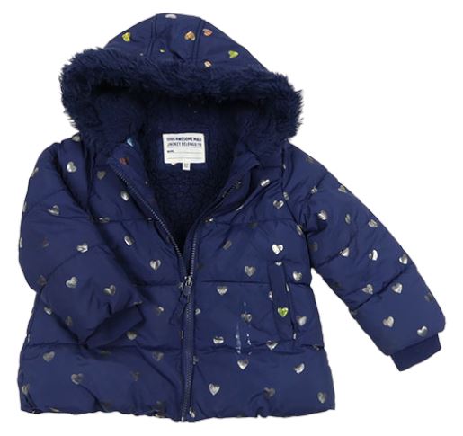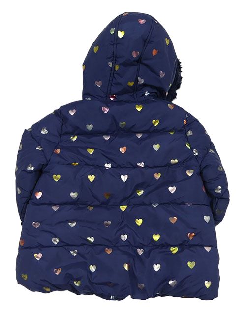 Tmavomodrá šusťáková zimní bunda se srdíčky a kapucí M&S