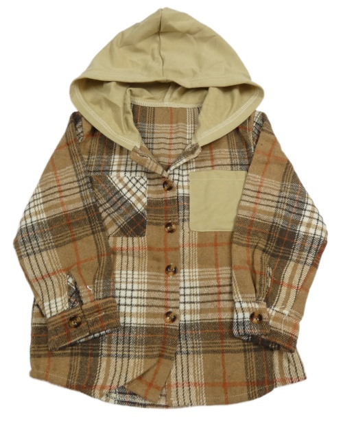 Hnědo-smetanovo-červená kostkovaná košilová bunda s kapucí