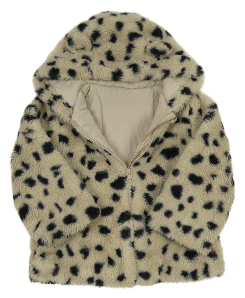 Béžová puntíkatá kožešinová zateplená bunda s kapucí Tu