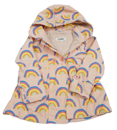 Růžový voděodolný podzimní kabátek s duhami a kapucí