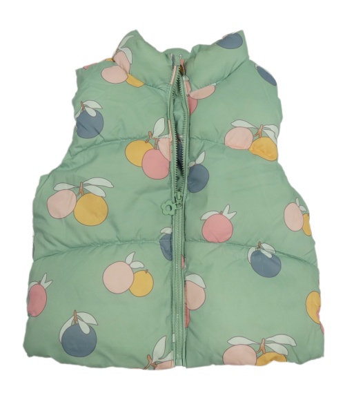 Světlezelená prošívaná šusťáková zateplená vesta s pomeranči Sfera