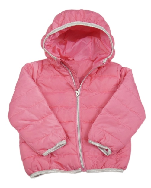 Růžová prošívaná šusťáková zateplená bunda s kapucí