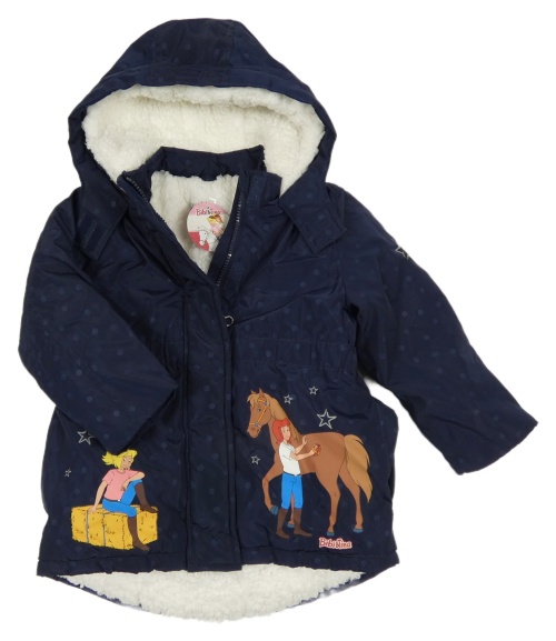 Nové - tmavomodrá šusťáková zimní bunda s koněm a dívkami a kapucí