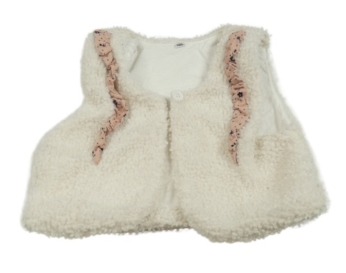 Smetanové huňaté podšité bolérko s volánky s kytičkami a puntíky