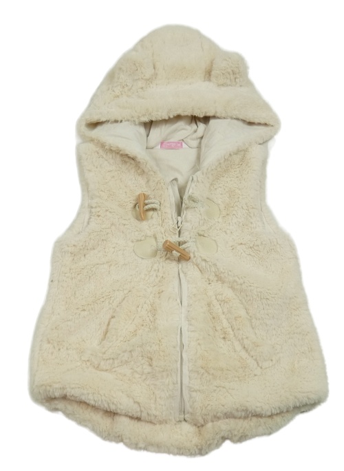 Smetanová kožešinová podšitá vesta s kapucí s oušky Smile