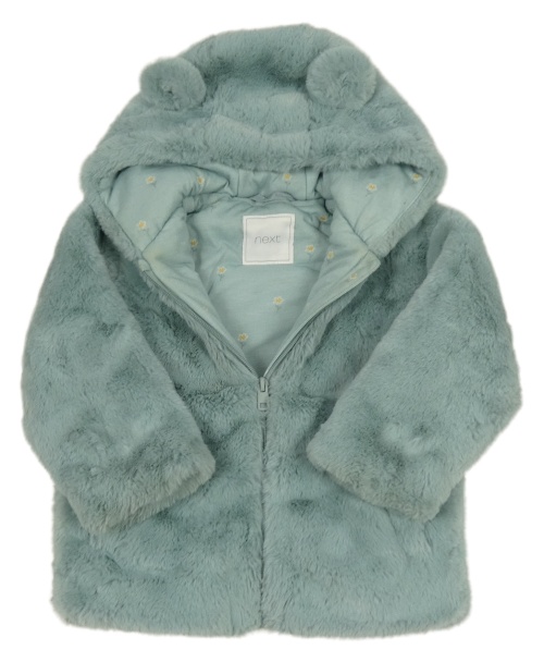Zelenošedá kožešinová zateplená bunda s kapucí Next