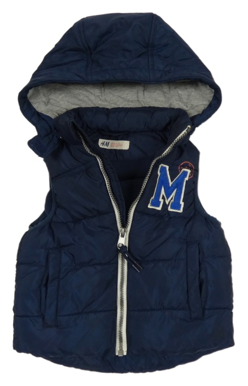 • Tmavomodrá prošívaná šusťáková zateplená vesta s písmenkem a odepínací kapucí H&M