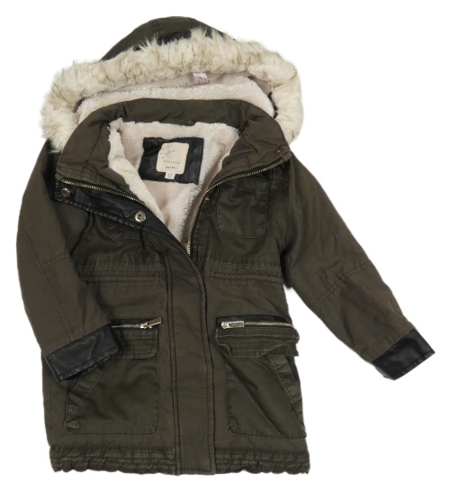 Khaki-hnědá plátěná zateplená bunda s kapucí s kožešinou River Island